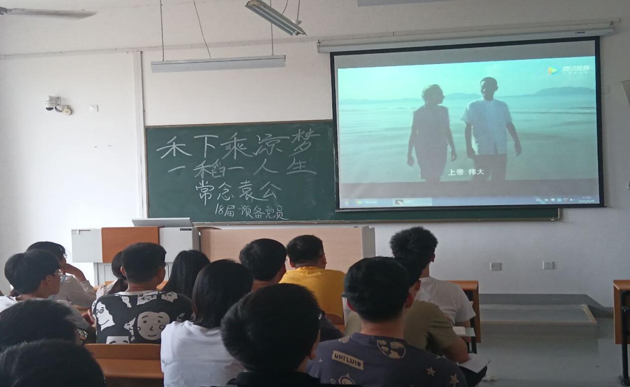 5月29日中午,机电系学生党支部开展主题党日观影活动,全体18级党员共同观看了影片《袁隆平》。