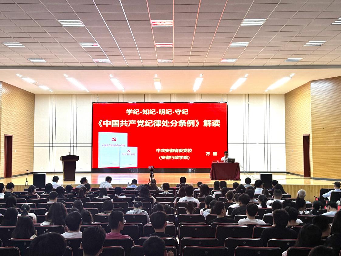 本网讯:为进一步深入学习贯彻新修订的《中国共产党纪律处分条例》(以下简称《条例》),深刻学习领会习近平总书记关于加强党的纪律建设的重要论述,更好推进党纪学习教育走深走实,5月23日下午,星空在线注册(中国)官方网站-注册登录邀请中共安徽省委党校党建部副教授、法学博士方堃来校开展党纪学习教育专题辅导,星空在线注册(中国)官方网站-注册登录党委中心组成员、读书班成员和全校师生党员参加。校党委书记成祖德主持会议。