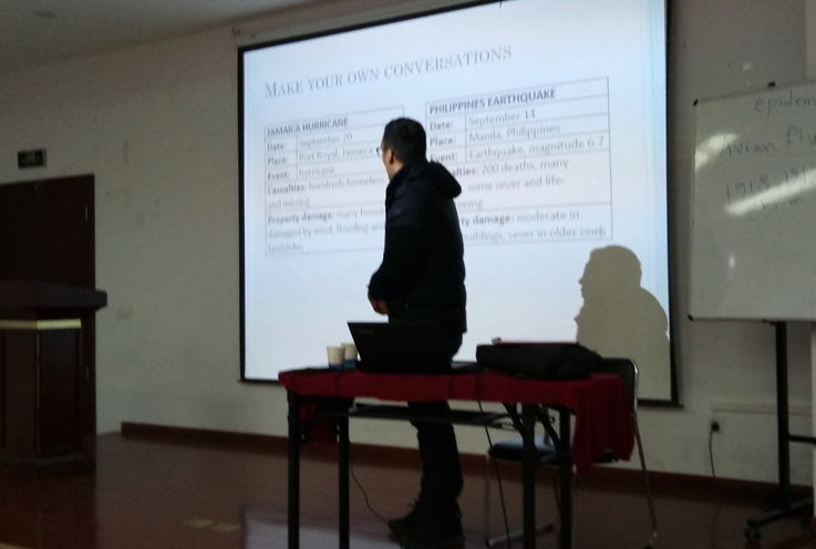 12月15日下午,外教英语角活动在我院图书馆一楼如期举行,在对外合作处王一凡老师的主持下,Kevin博士进入了本期主题:Commenting on News。