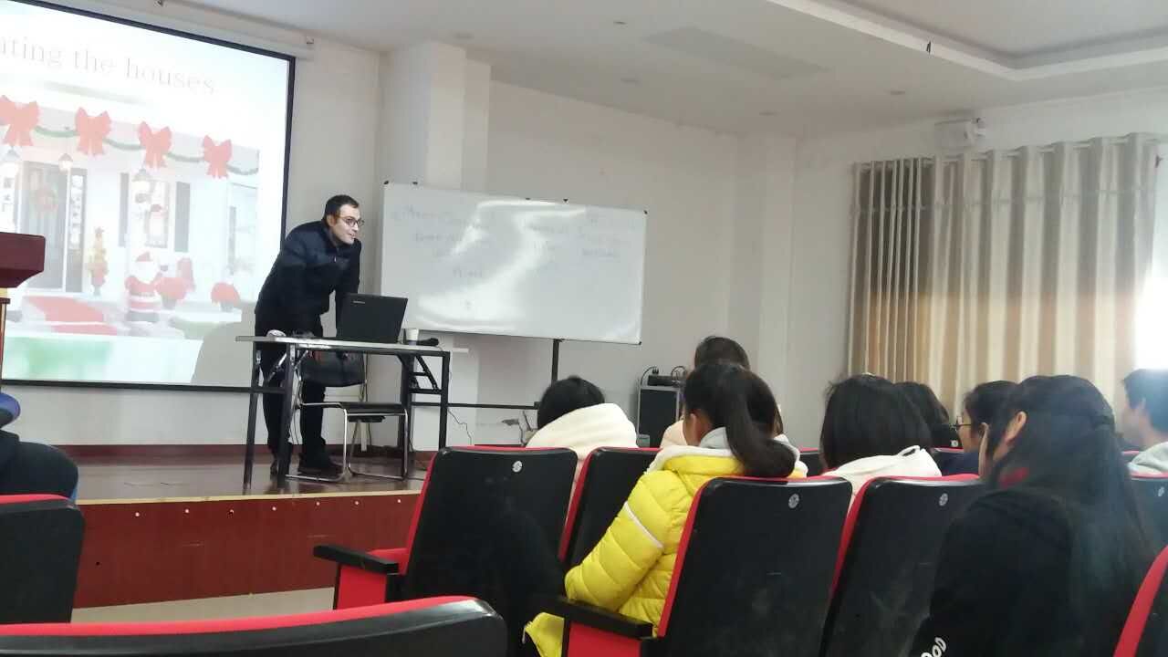 12月29日,临近期末,紧张的节奏下迎来了本学期最后一次外教英语角活动。同学们与外教Kevin如约而至,对外合作处王一凡老师在做了简洁的主持开场之后,活动开始。