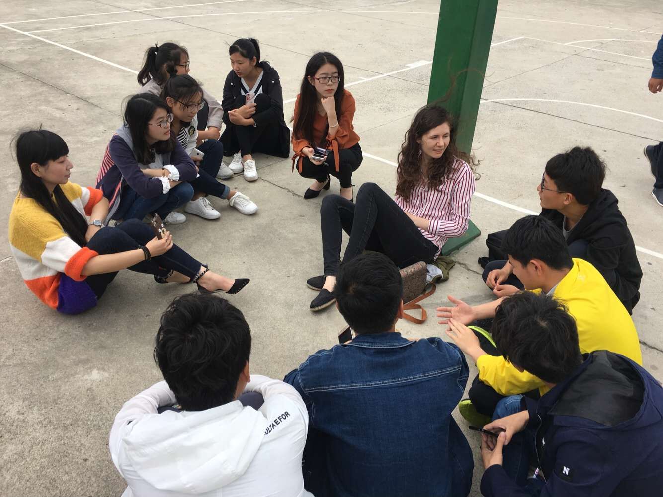 之后,我们改变了以往的模式,走出教室,来到户外,继续英语的学习与交流。Aga还和大家一起玩起了篮球,用英语交流着打篮球的技巧和乐趣,蓝天下奔跑着的同学们发出阵阵笑声,白云与操场之间尽是师生们其乐融融的身影。