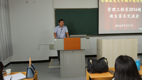 9月17日下午两点半,管理工程系于南教学楼102教室召开2016届新生家长交流会,系主任曹泽主持会议,并与2016级入学新生及家长进行深入交流。
