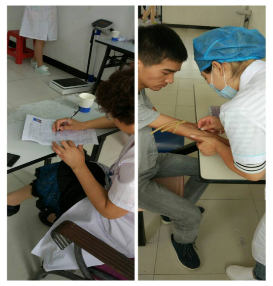 在现场的抽血过程中,绝大多数学生坦然面对,而小部分同学显得有些紧张。