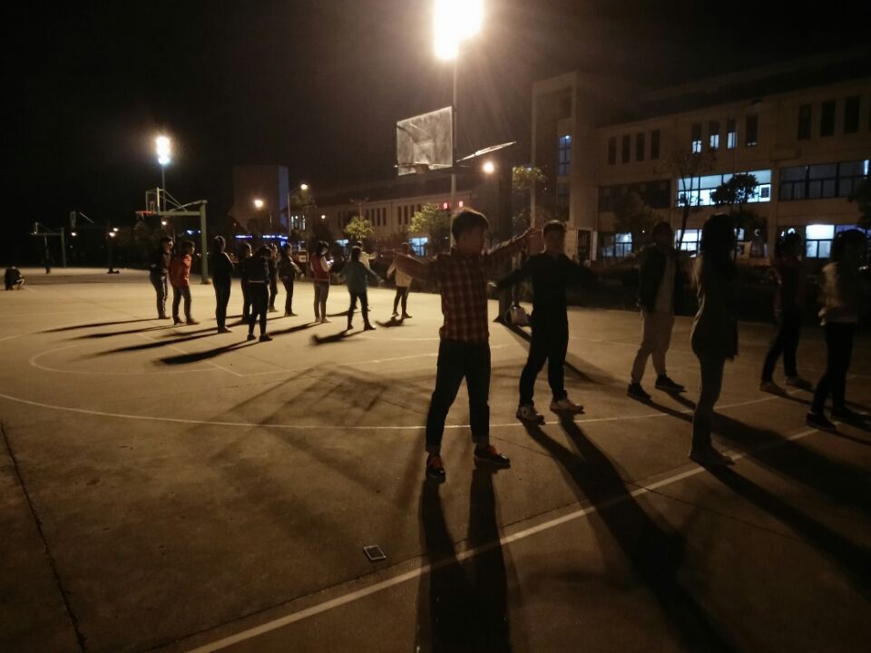 10月8日晚上19:30,15级龚菁菁、梁笑、郭可铭、高歌、王璐五位同学,在篮球场,开始了对16级体委、文艺委员的教学指导,让他们成为本班级的领操人员。