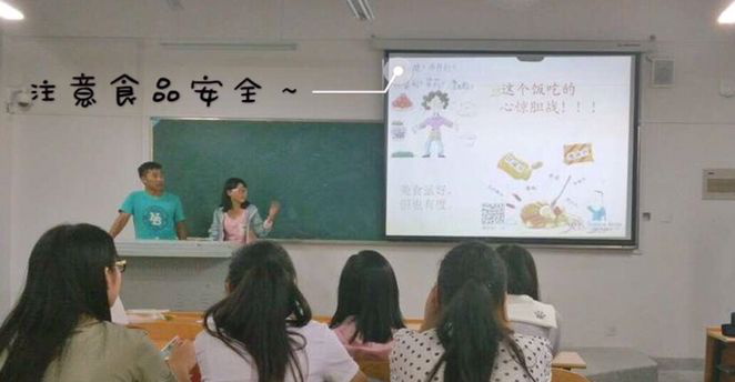 民以食为天,针对校园食品安全这个突出问题,班长绘声绘色的教同学们如何搭配膳食,如何避免中毒以及中毒症状。