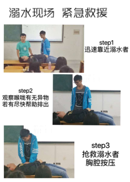 巢水央央,碧波荡漾的巢湖却也有吞噬生灵的一面。城建处在湖畔附近,意外时常发生,班会刚刚开始,班长就着重对此做了强调,对于如何抢救溺水人员紧急措施也进行了详细的讲述。同学们都非常感兴趣,跃跃欲试充当溺水志愿者。现场讲述如何抢救溺水人员。同学们都表现出前所未有的兴趣。在愉悦的氛围中,也学会了一定专业知识和救生意识。