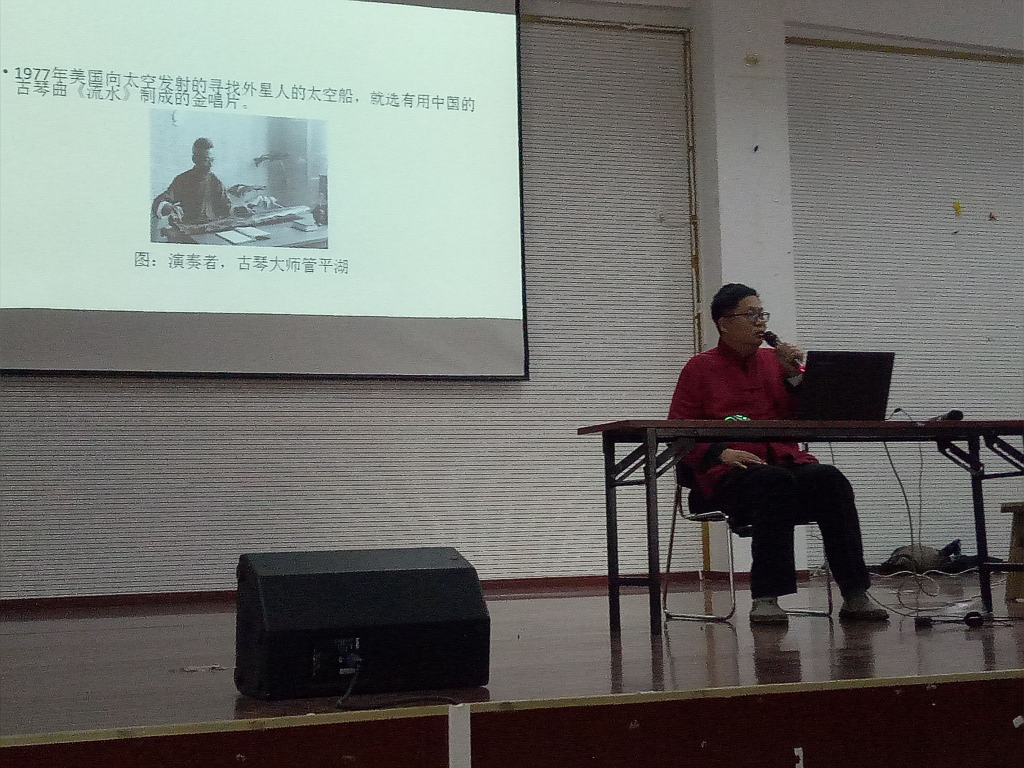 11月10日下午,图书馆二楼报告厅,我院特邀孔子第74代后人、古琴岭南派传人孔浩泉先生来我院做古琴与中国礼乐文化讲座,近距离领略孔家后人的风采。悠哉听谈中国礼乐文化,乐哉享受来自上古的琴声。讲座现场,孔浩泉先生不仅就古琴文化作了详细介绍,还现场演奏古琴乐曲,身临其境感受古代文人雅趣,中华传统文化的厚重感油然而生。