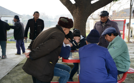 节目表演完之后,同学们陪老人们聊聊天,玩玩牌,有的还和老人杀了盘象棋,大家都相聊甚欢,一片其乐融融。虽然相处仅仅两个多小时,离别时老人们还是依依不舍,合个影做纪念。