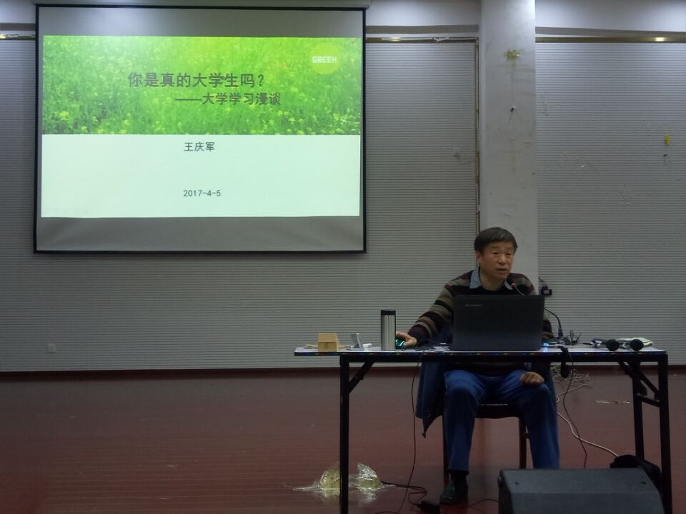 “你是真的大学生吗?”一听到这个题目同学们就疑惑了。“这还用问?我们可都是经过高考,有学生证的!这个王老师是什么意思?”带着这样的疑惑,同学们纷纷在4月12日晚上7点来到图书馆大礼堂,聆听合肥工业大学管理学院王庆军老师的讲座——你是真的大学生吗?现场人气爆棚,去的晚的同学只能见缝插针的艰难找位置。
