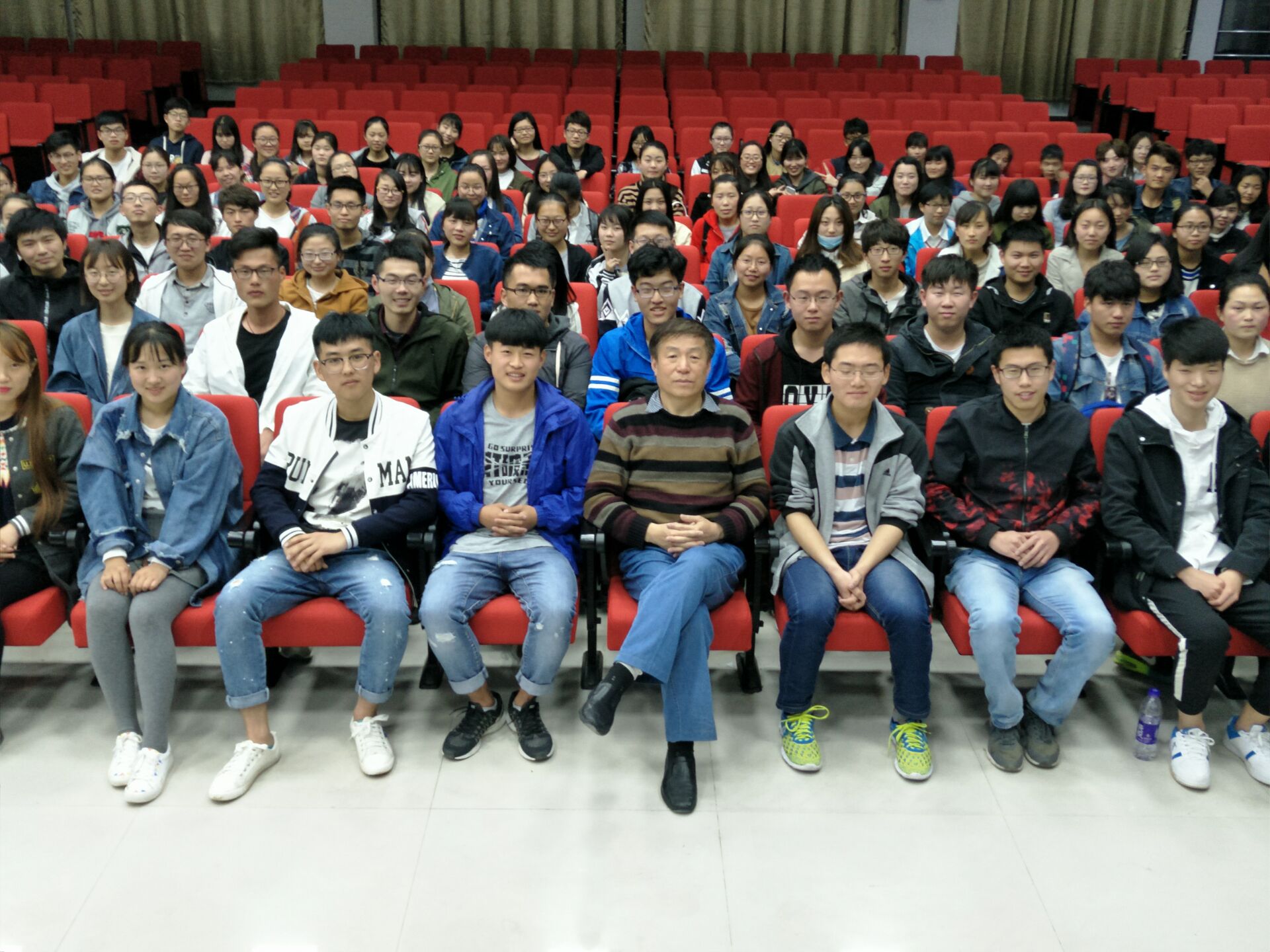 两个小时讲座结束后,现场依然还有许多同学不愿离去,希望能与王老师进一步交流,王老师也热情回应,公布了自己的联系方式,并与依依不舍的同学们合影留恋。
