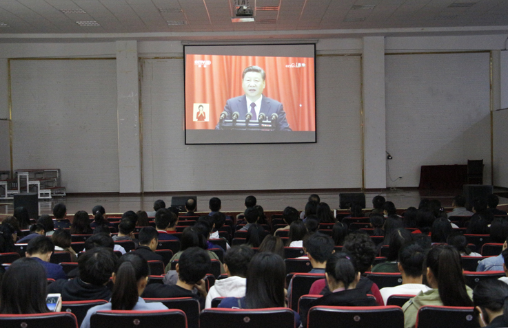 管理系曹主任说:“今天是十九大召开的日子,十八大以来,国家在以习近平总书记为党中央的正确领导下,快速前进。我们作为高校教育工作者,我们要在教书育人上继续努力学习新知识,狠抓教学,深刻领会报告精神,做好人才培养工作,不断为国家和社会输送优秀人才。”