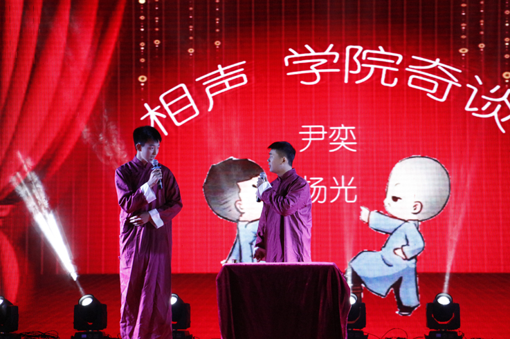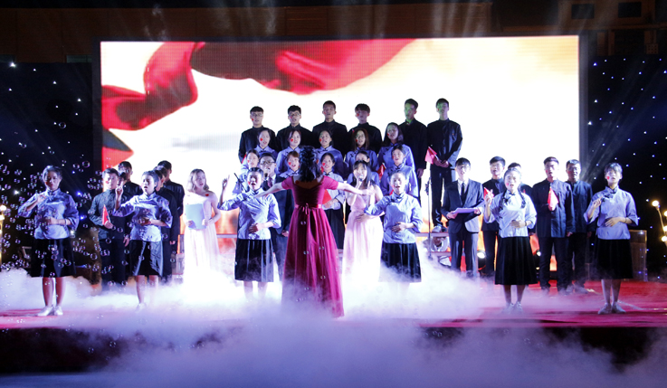 晚会的节目丰富多彩,各具特色。《齐天大圣》唱得激情澎湃,如大海中的滚滚波浪拍案而来,惊天动地,震撼了每一个同学的心;《舞龙》一出,同学们喝彩声连绵不绝,在演员的挥舞下,龙仿佛活了过来,腾云驾雾,嬉戏玩耍,栩栩如生;还有辅导员朗诵的诗歌《为你写的诗》更是表达了他们对我们的教导与期望,这些都深深印在同学们的心中;当然相声表演《学歌曲》和《学院奇谈》也不失色彩,一捧一逗,眉飞色舞,夸张的动作与滑稽的表情逗得大家捧腹大笑,摇头晃脑……所有节目表演结束后,全体师生起立共唱《歌唱祖国》,喜迎十九大,表我们对祖国的热爱,祝福祖国繁荣昌盛,更加富强!!!