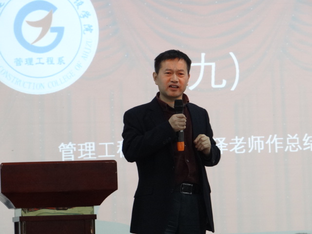 最后,系主任曹泽老师上台作总结讲话,表示对系学生工作表示满意,对上届学生会高度嘉奖,鼓励新一届学生会继往开来,继续砥砺前行。他强调,学生会是学生自己的组织,是全体学生共同的精神家园,要坚持自我管理、自我监督、自我服务原则,发扬服务同学、服务老师、服务学院、服务社会的理念,努力创建学习型组织,建立服务功能,开创我系学生工作新局面。同时,希望我们生活和学习上严于律己,高标准要求自己,肩负起重任,对得起学生干部称号。