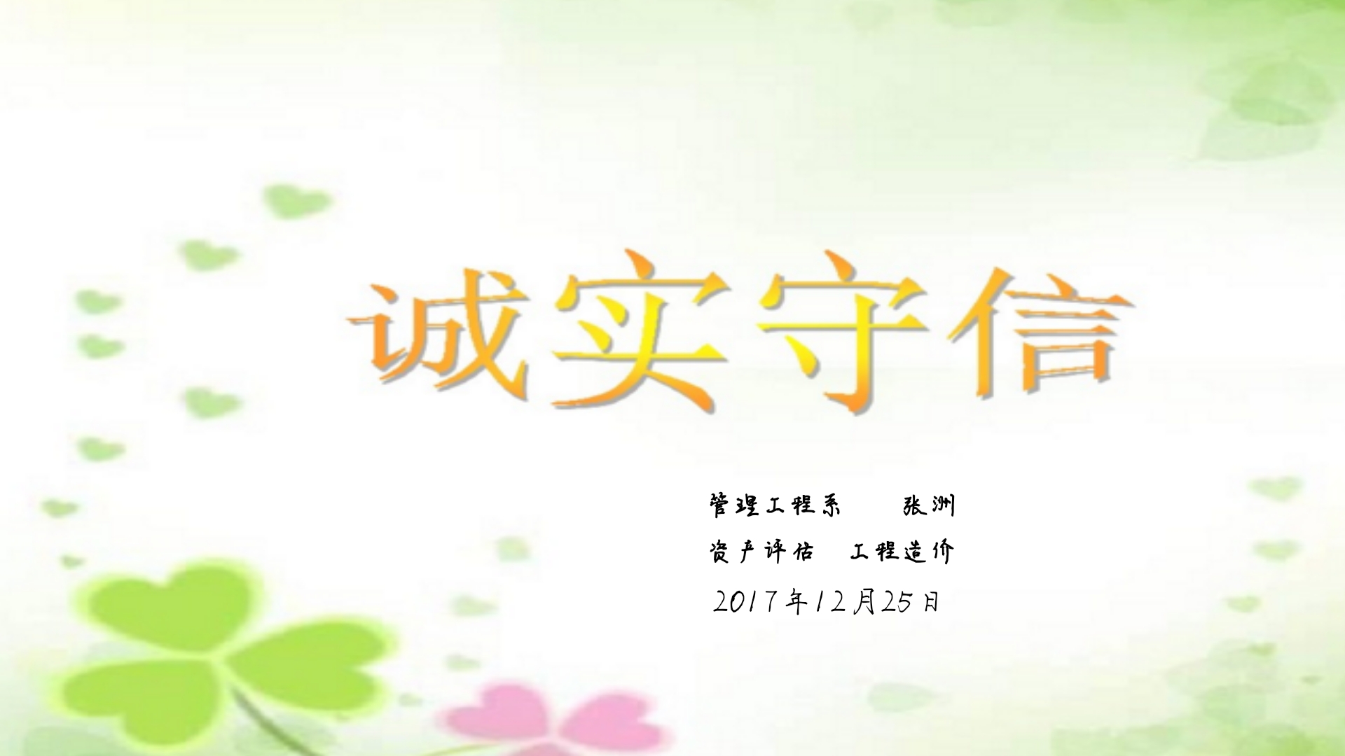 诚信是为人之本。生命不可能在谎言中开出灿烂的鲜花,所以,我们要做到诚实守信。为此,辅导员张洲老师于在12月25日晚上21点30份在南教203开展了一次诚信教育班会活动,参加人员各班班长、副班长、团支部书记等学生班干。