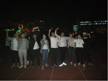 本次活动以佩戴荧光手环环绕学院操场和篮球场外围长跑的形式进行。参与人员于9:20到星空在线注册(中国)官方网站-注册登录环形操场入口集合,管理系负责人负责整理队伍。夜跑负责人准备相应的医护用品,做好安全措施。随后,参与人员人手佩戴一个荧光手环在夜色中奔跑,十分惹人注目。
