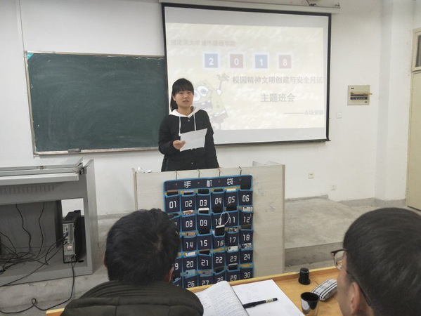 为了加强同学们的精神文明建设,为了同学们深刻理解学院规章制度,为了增强同学们安全防范意识,安徽建筑大学城市建设学院管理工程系2018市场营销专业下午七点五十在东教407举行了“校园精神文明及安全”主题班会。
