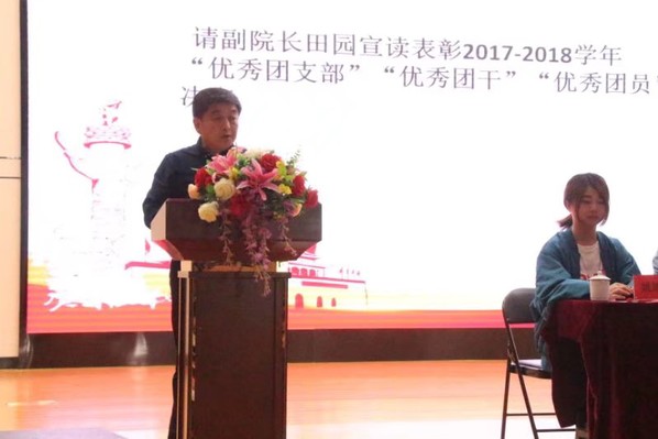 王利康书记宣布大会开始后,全场起立凑唱国歌,尔后由副院长田园宣读表彰决定,并依次对优秀团员代表、优秀团干代表和优秀团支部进行颁奖。