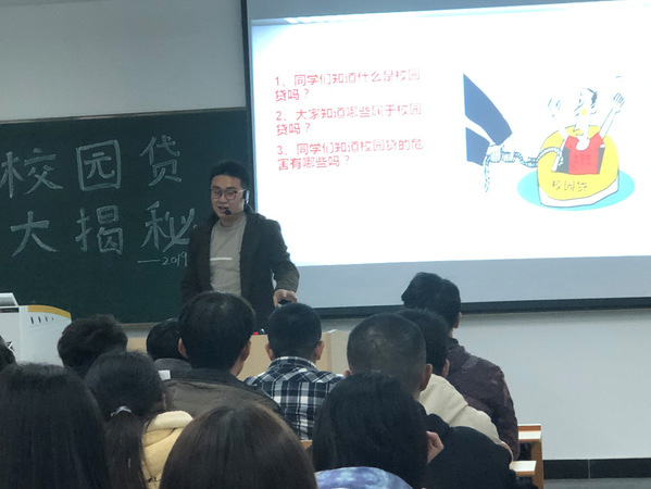 2019年12月5日晚7:00,安徽建筑大学城市建设学院管理工程系18级资产评估专业,在西教106举行“校园贷大揭秘”主题班会活动,本次班会由张洲老师主持,主要是针对最近频发的网络诈骗和校园贷问题,意图通过此次班会,强化学生防骗意识,杜绝此类问题。