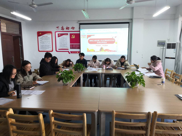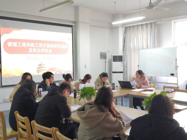 根据《关于召开主题教育专题组织生活会和开展民主评议党员的通知》(院党函〔2019〕40号)文件精神,安徽建筑大学城市建设学院管理工程系教工党支部于2019年12月5日下午,在管理系会议室召开了“不忘初心、牢记使命”主题教育专题组织生活会及民主评议党员工作,会议由支部书记张荣荣同志主持。