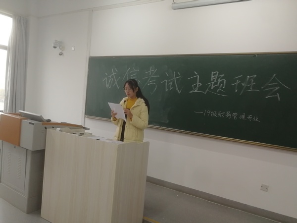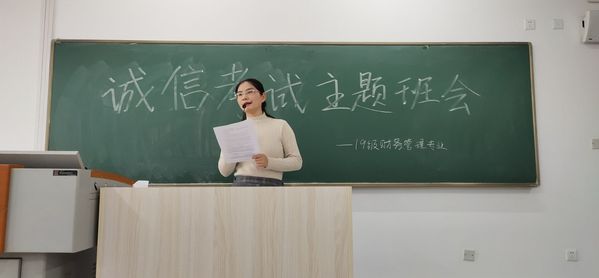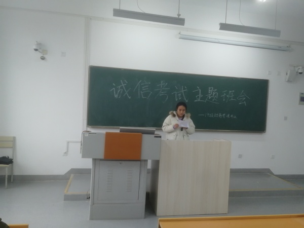 期末考试将至,为增强学生诚信意识,杜绝考试违纪现象,进一步强化考风考纪,营造良好的学习氛围和公平竞争的环境。安徽建筑大学城市建设学院管理工程系2019级辅导员丁斋娟老师特于12月25日在南教204召开了“诚信考试”主题班会。