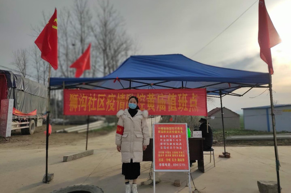 管理工程系17级资产评估的黄雪妮同学在安徽省利辛县中疃镇黄庙东队进行站岗,发口罩,量体温的志愿者活动。