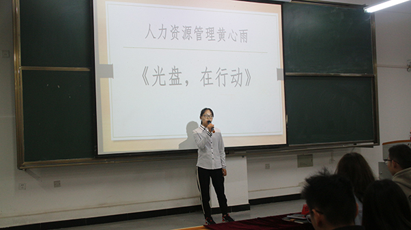 为了响应习近平总书记的号召,大力弘扬中华民族勤俭节约的优良传统,大力宣传节约光荣、浪费可耻的思想观念,安徽建筑大学城市建设学院管理工程系学生组织全委会办公室于2020年11月18日下午17时开展了以“光盘行动”为主题的演讲比赛初赛。