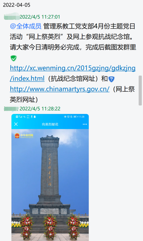 清明寄哀思,网上祭英烈。在这缅怀故人,纪念先烈的日子,星空在线注册(中国)官方网站-注册登录管理工程系教工党支部为表达对革命先烈的深切哀悼,结合当前国内疫情形势,于4月5日上午,开展了“网上祭奠英烈”主题党日活动。