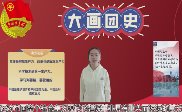 各团支部发表视频各具风采,如20级资产评估2班深入分析了南方谈话的意义,真实的体会到邓小平爷爷带领着党和国家大步迈向前的过程;21级财务管理专业1班以如今的“青马工程”为起点,回望历史,诠释了它对中国共青团的影响。这些视频的发布不仅加深了各团支部对团史的认知,更是搭建了让我校学生互相学习,展现蓬勃朝气的舞台。