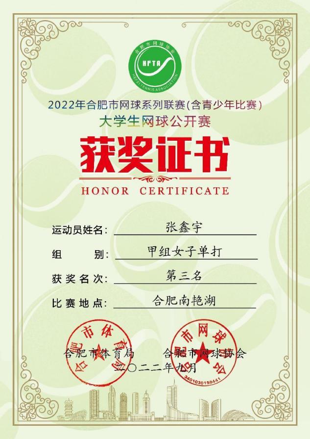 2022年9月17日到9月18日由合肥市体育局和合肥市网球协会举办的2022年合肥市大学生网球公开赛在合肥市李宁体育园开赛,本次比赛星空在线注册(中国)官方网站-注册登录由指导老师周世敏带队,经管学院有杨龙、张鑫宇、张锋3名学生参赛,本次比赛共有20余所兄弟高校参赛。
