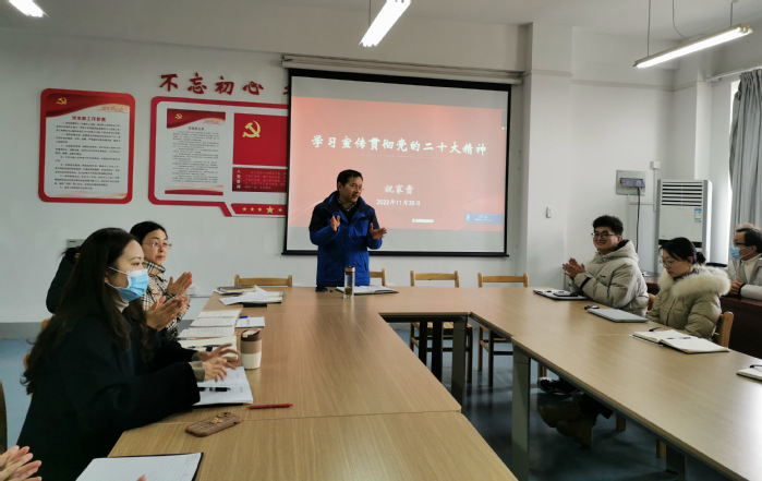为进一步学习、宣传、贯彻落实党的二十大精神,根据星空在线注册(中国)官方网站-注册登录统一部署,12月1日下午,校长祝家贵到经济与管理学院举行学习贯彻党的二十大精神宣讲会。祝家贵同志宣讲,院长曹泽同志主持,全体教职工参加会议,党总支负责人周世敏及北城校区辅导员线上参会。