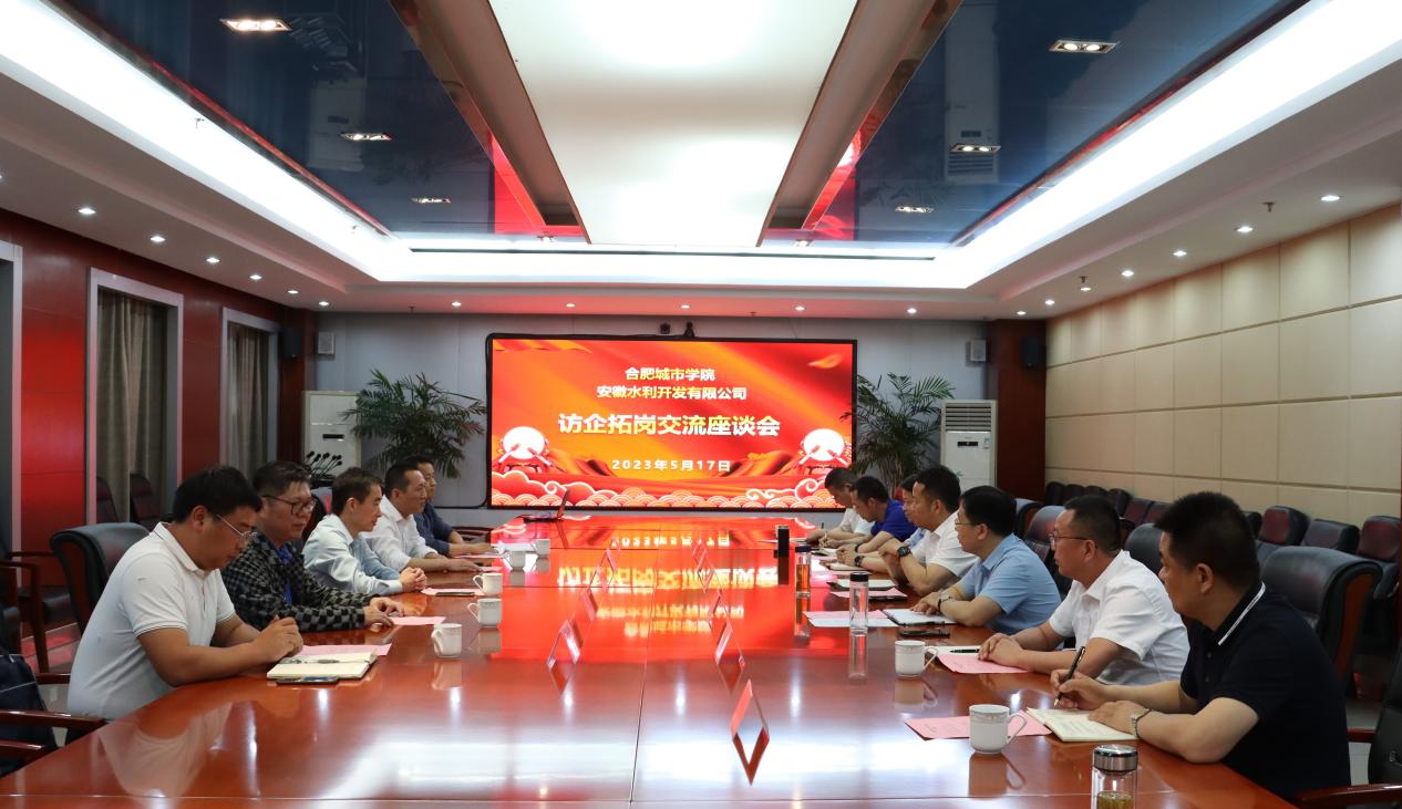 与会安徽水利开发有限公司、安徽水利生态环境建设有限公司、安徽水利嘉和机电设备安装有限公司、安徽建工嘉和建筑工程有限公司、安徽水利环境治理工程有限公司、安徽水利嘉和建筑工程有限公司等企业负责人围绕校企校地合作,专业人才培养,育人平台构建,毕业生就业等畅所欲言,进行了充分的交流。
