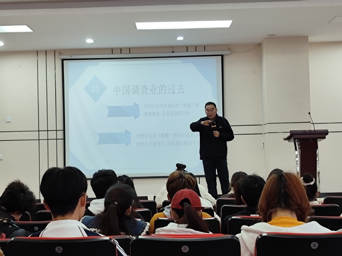 11月15日下午,为提供更广阔的学习平台和更丰富的学习资源,经济与管理学院开展“社会调查与数据分析”学术讲座。此次讲座由原合肥晚报广告处长、安徽经典市场调查咨询公司总经理程局新主讲,在校大学生聆听讲座。