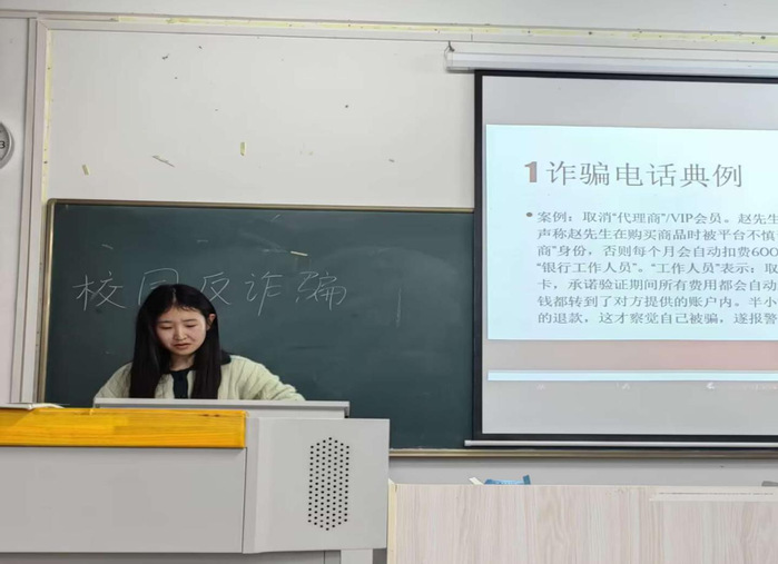 3月28日晚上,经济与管理学院2023级普本各班级在晚自习教室开展谨防电信诈骗主题班会。这次班会是由经济与管理学院专职辅导员携手各班思政委员、组织委员、宣传委员共同筹划与组织,旨在让每一位同学深刻认识到防诈骗的重要性,并提升大家的自我保护意识。