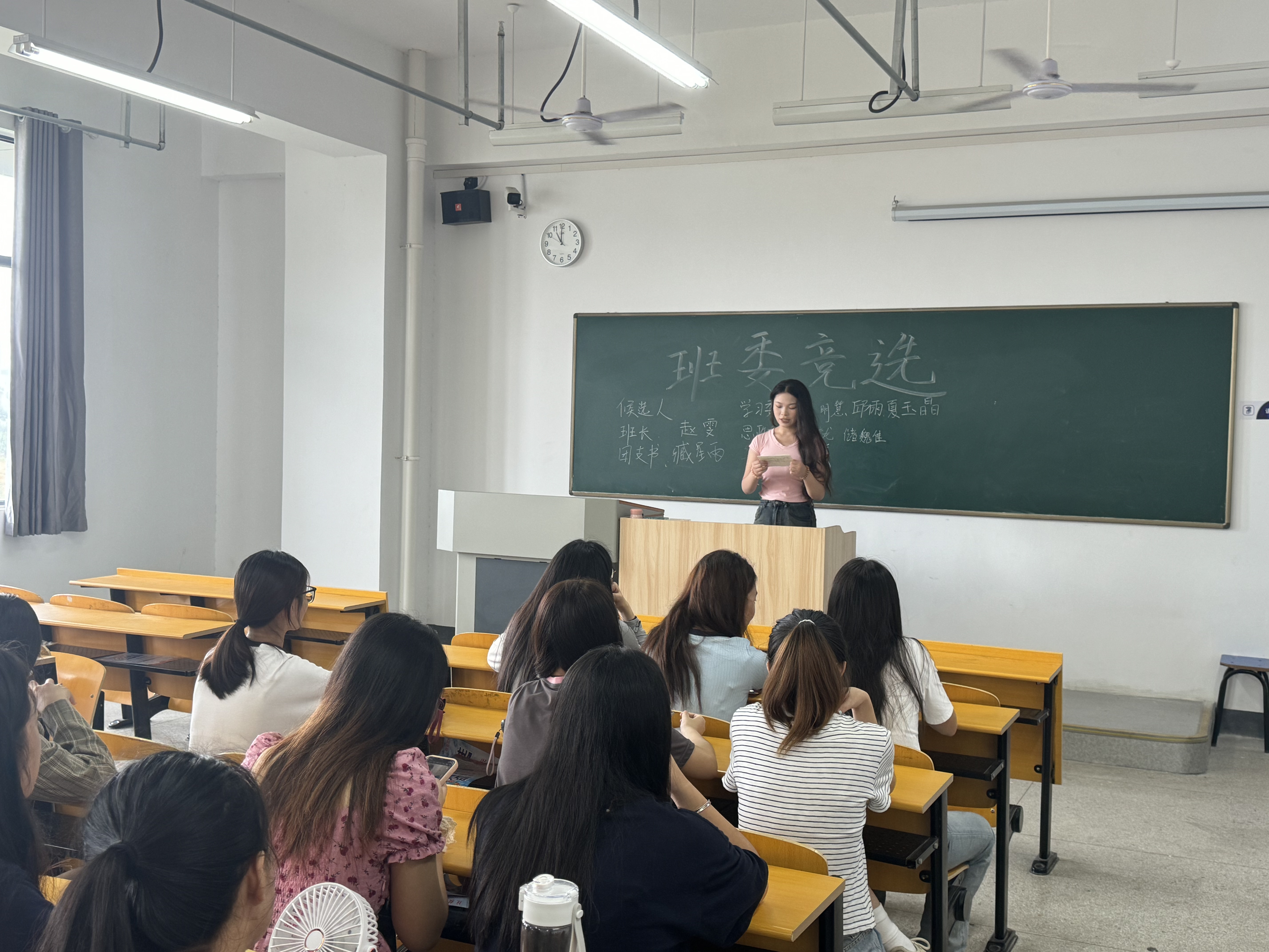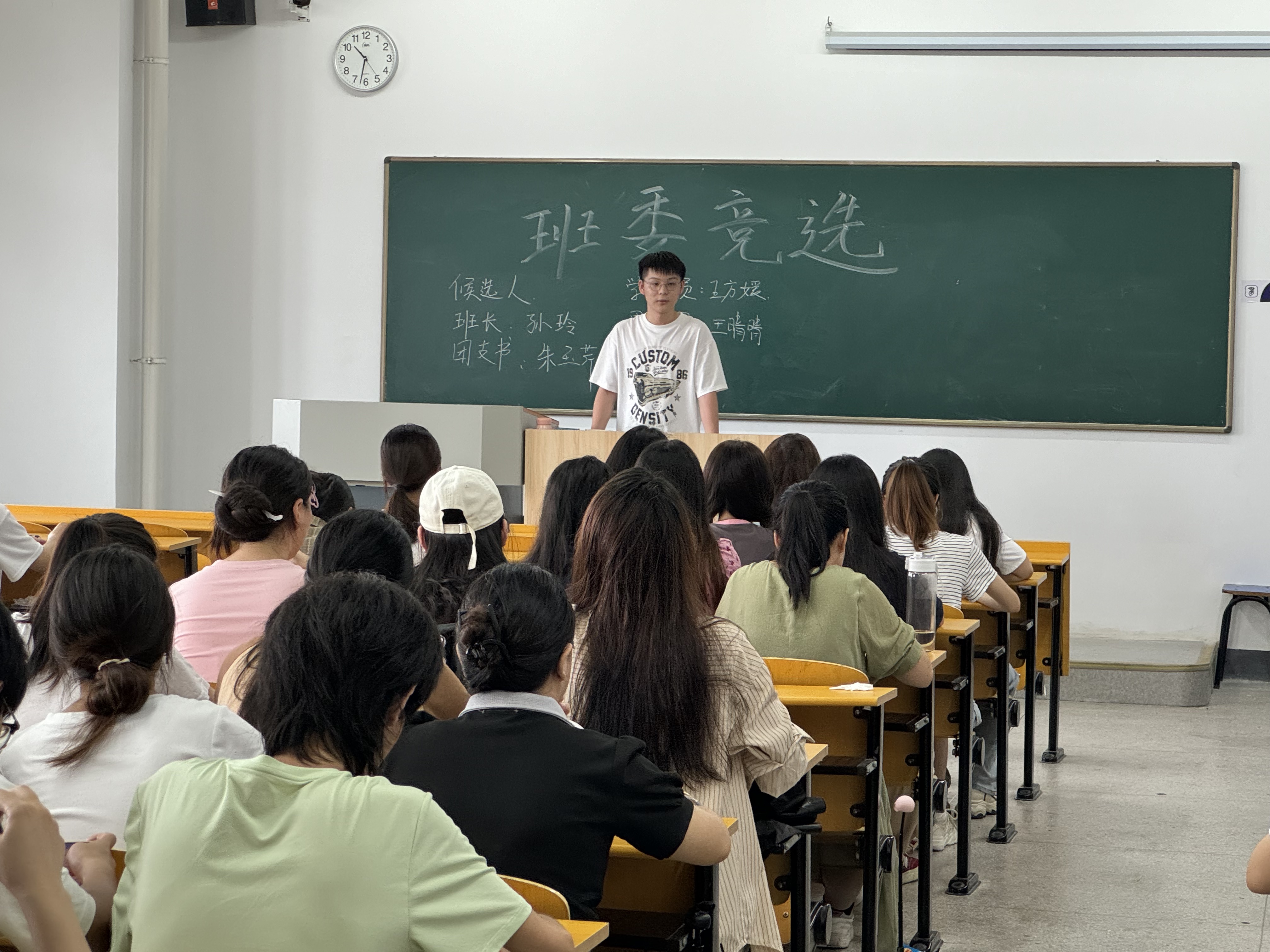 竞选现场气氛热烈,来自班级各个角落的候选人纷纷登台亮相,他们围绕个人简介、竞选岗位、工作规划及承诺等方面进行了精彩的演讲。有的候选人以幽默风趣的语言展现个人魅力,有的则以深情并茂的演讲表达对班级未来的憧憬与决心。同学们认真聆听,不时报以热烈的掌声,现场互动频繁,氛围高涨。