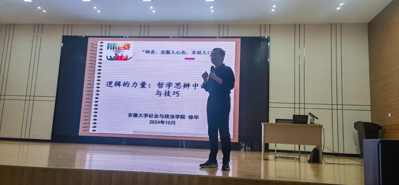 10月17日中午,经济与管理学院于图书馆二楼报告厅成功举办了一场精彩纷呈的学术讲座。讲座以“逻辑的力量——哲学思辨中的思维与技巧”为主题,诚挚邀请了安徽大学社会与政治学院教授徐华担任主讲人,此次讲座吸引了众多学生积极参加。