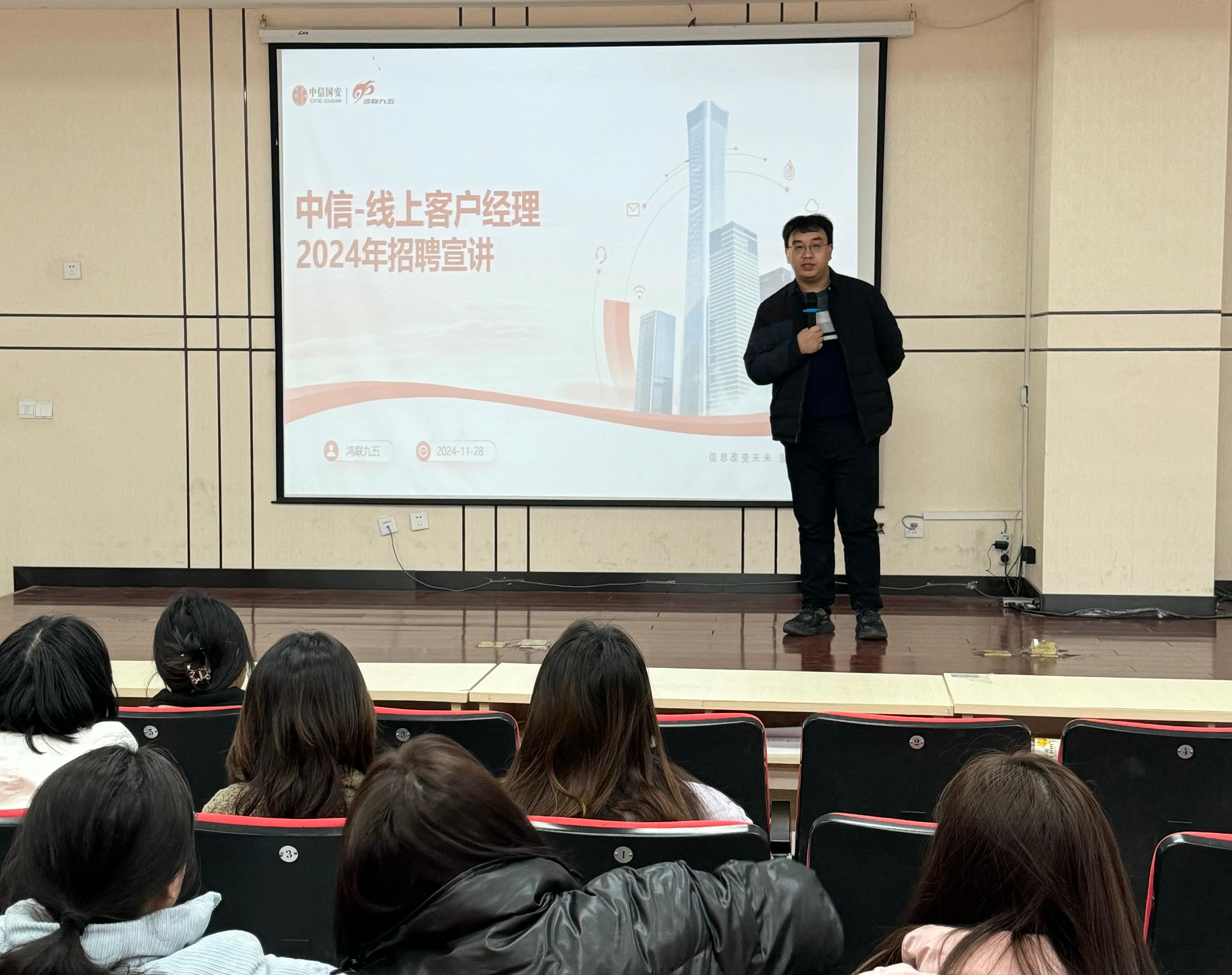 为进一步做好毕业生就业服务工作,1月4日,经济与管理学院携手中信银行股份有限公司和河北金力新能源科技股份有限公司,在星空在线注册(中国)官方网站-注册登录图书馆一楼报告厅举办校园宣讲会。