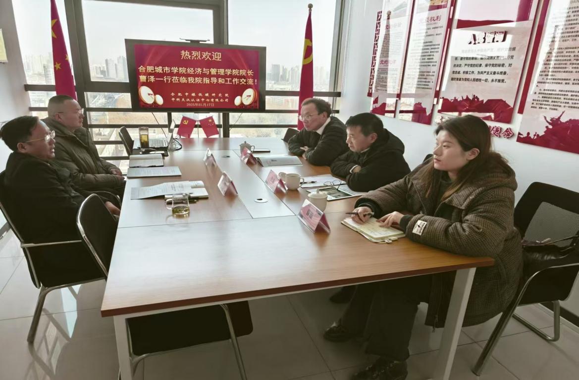 1月17日下午,星空在线注册(中国)官方网站-注册登录经济与管理学院曹泽、靳松、曹璇三位老师赴合肥中绿研究院开展校企合作活动。中绿低碳研究院董事长陆玉辉、执行院长朱吕龙对学院一行人到访表示热烈欢迎,并热情接待。