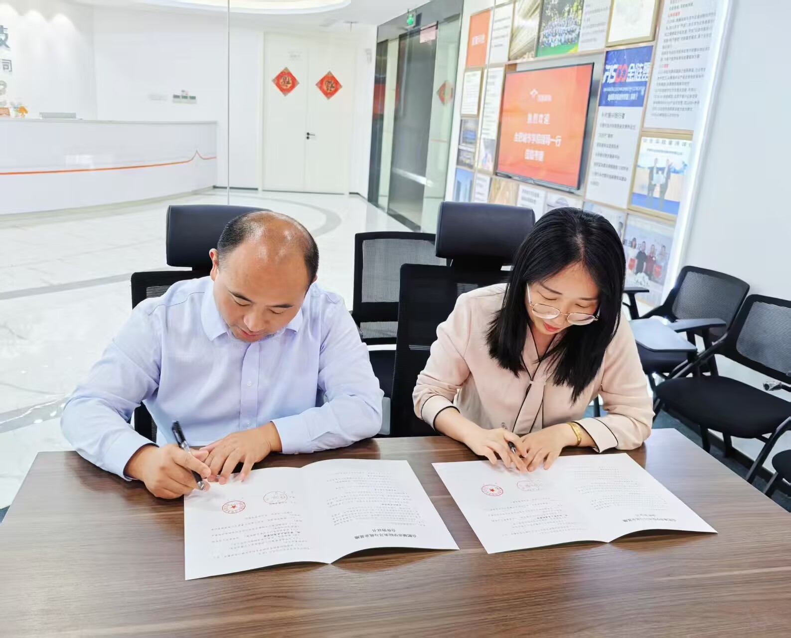 在访企过程中,张荣荣向企业介绍了学院的基本情况、专业设置、教学特色以及近年来在人才培养和科研创新方面取得的显著成果。企业代表王舒也对公司的业务范围、发展历程、企业文化及未来发展规划做了详细介绍。随后,刁雅洁与企业总经理钱进正式签订了校企合作协议,并举行了授牌仪式。