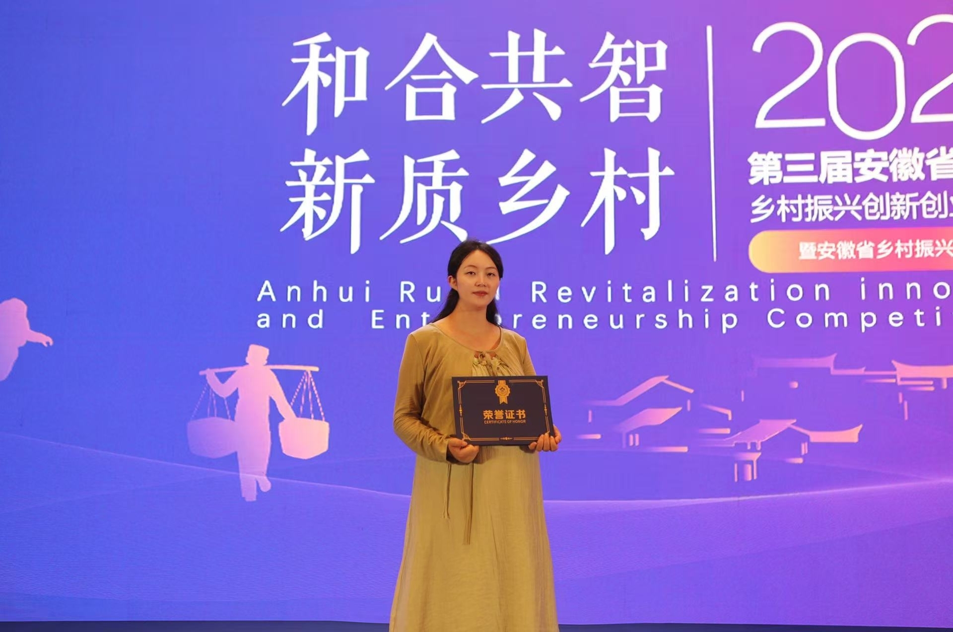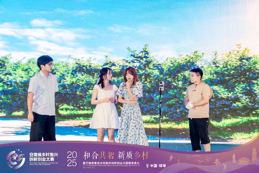 5月18日下午,第三届安徽省乡村振兴创新创业大赛颁奖典礼暨第四届大赛启动仪式在蚌埠市龙子湖迎宾馆隆重举行。本次大赛由安徽省多部门联合主办,经济与管理学院团总支书记张婷凤、乡村振兴喜剧小品《喜上莓梢》学生演员及获奖学生代表受邀出席,共同见证这一荣耀时刻。