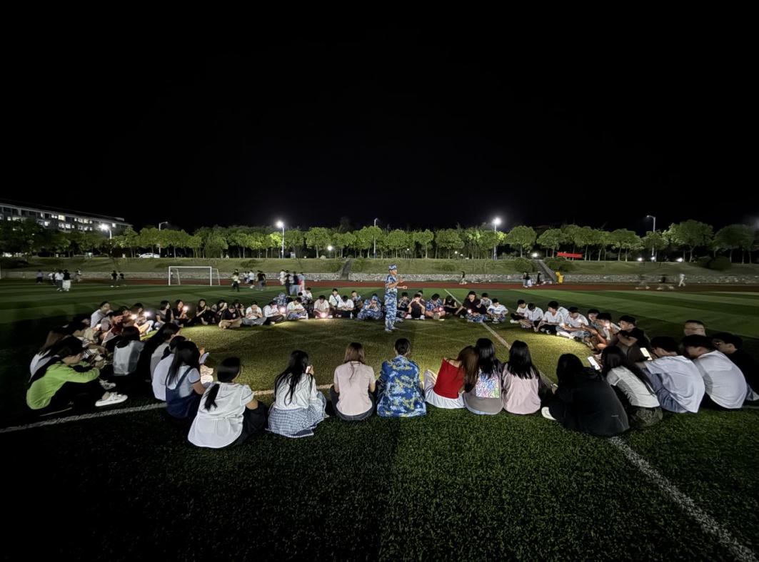 活动当晚,操场上灯光点点,气氛热烈。褪去白日里的严肃紧张,辅导员们也积极参与其中,与同学们打成一片。活动内容精彩纷呈:“逢三过”游戏在紧张有趣的氛围中让大家快速记住了彼此的名字;“团队才艺展示”环节,学生们轮番上阵,歌曲等节目层出不穷,掌声、欢呼声、笑声此起彼伏,将现场气氛一次次推向高潮,趣味十足。大家为了共同的目标集思广益、互相鼓励,在欢乐中深刻体会到团队的力量。