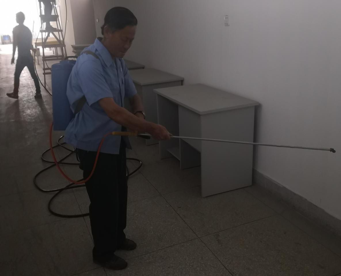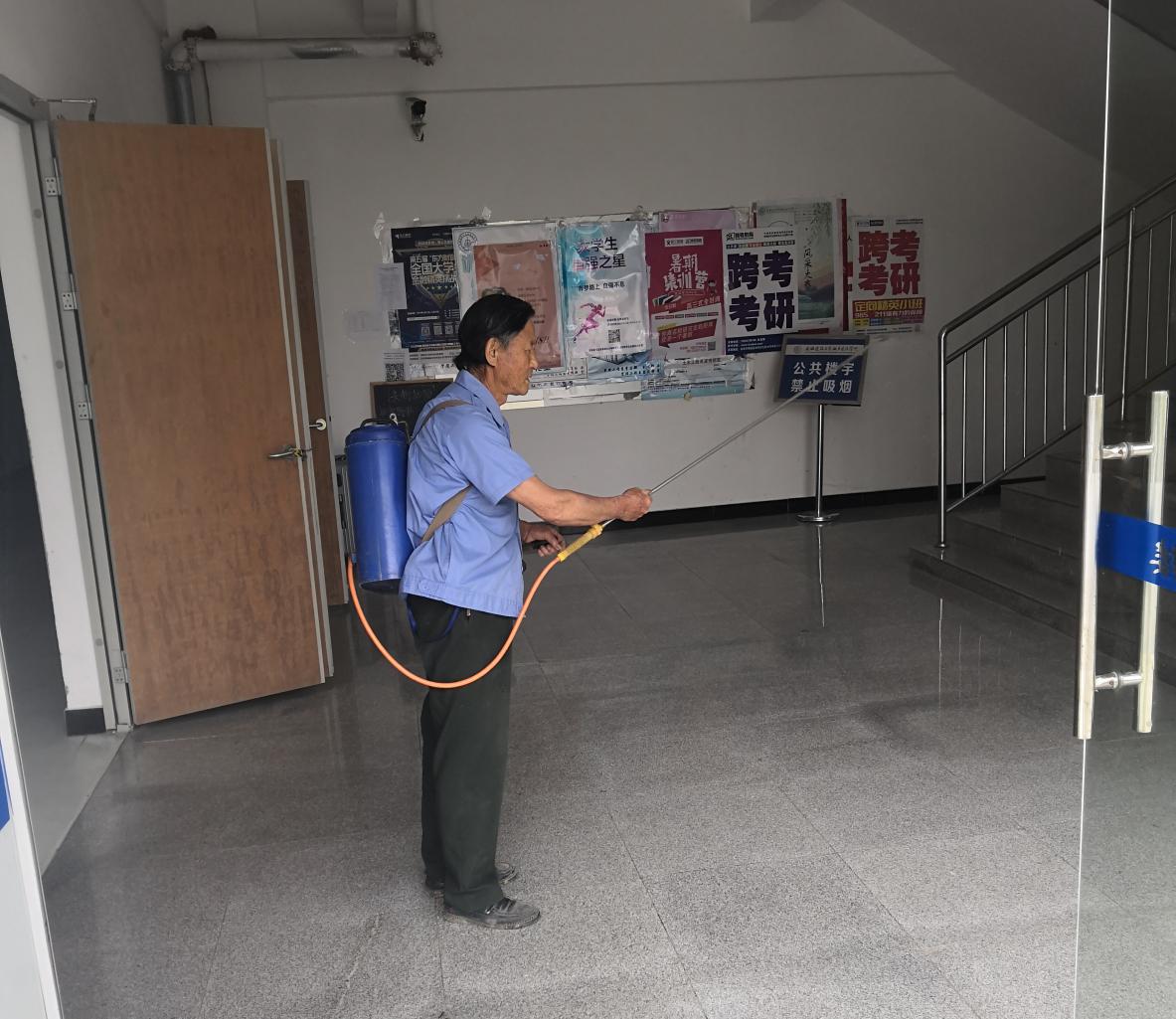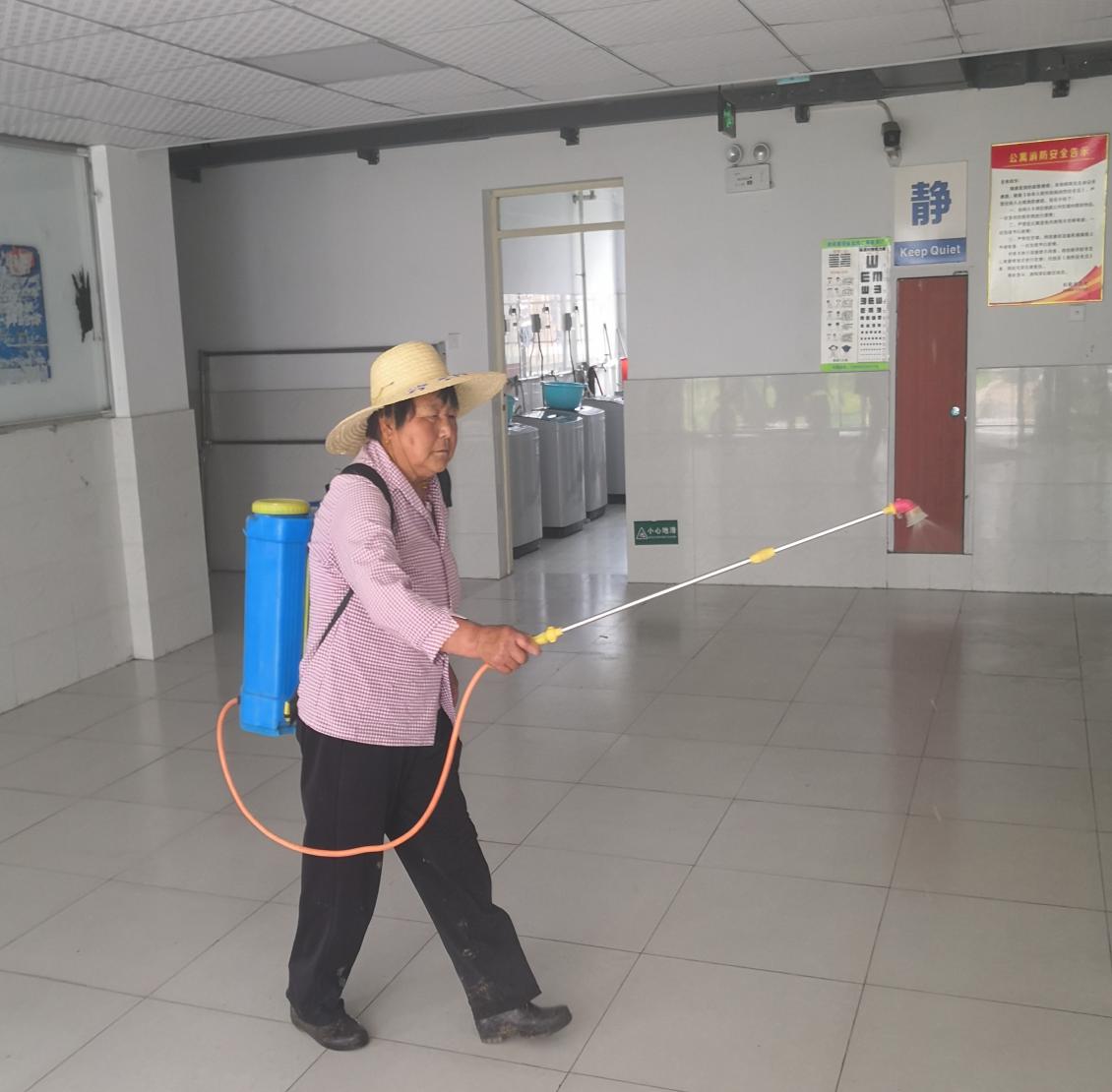 夏季传染病防控工作刻不容缓,工作人员严格按照程序对全校公共场所进行了喷洒消毒,不放过一个死角,消毒过程中做到认真、仔细、积极,同时对校园各个地方的环境卫生时刻保持整洁,为学生创造一个安全的卫生环境,为师生健康保驾护航。