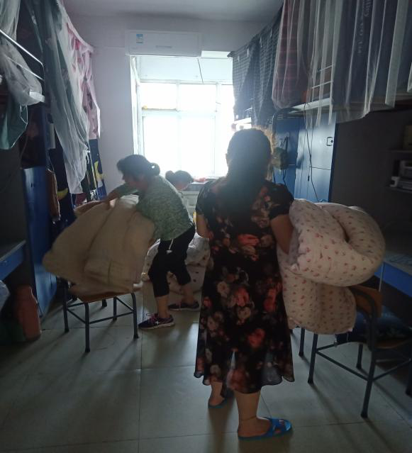 今年因新冠肺炎疫情这场病毒,造成学生无法返校,宿舍里同学们几个月没有使用的被褥让宿管阿姨们担忧牵挂。
