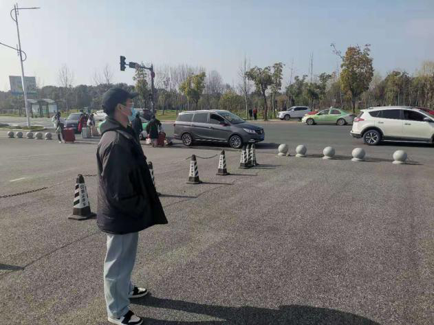 他们在后勤保卫处刘文峰的带领下,疏散道路交通、指挥车辆停放、帮助同学搬运行李、引导同学进入安全检测通道等,一直忙碌到