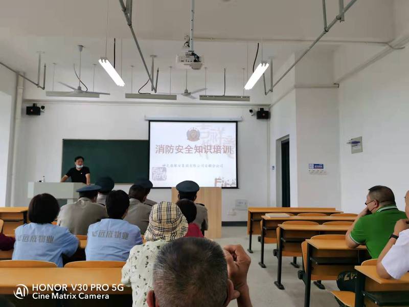 为进一步加强校园秩序管理的标准化、规范化,不断提升保安人员的执勤能力和服务意识,做好学生返校后的校园疫情防控管理工作,2021年8月27日下午,学院后勤保卫处联合保安公司在北城校区202教室开展了保安队员业务培训和物业保安人员的消防培训。