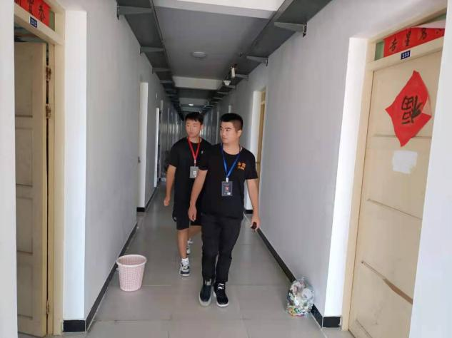 校卫队检查宿舍楼安全情况