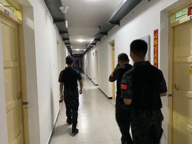 队员检查宿舍楼安全
