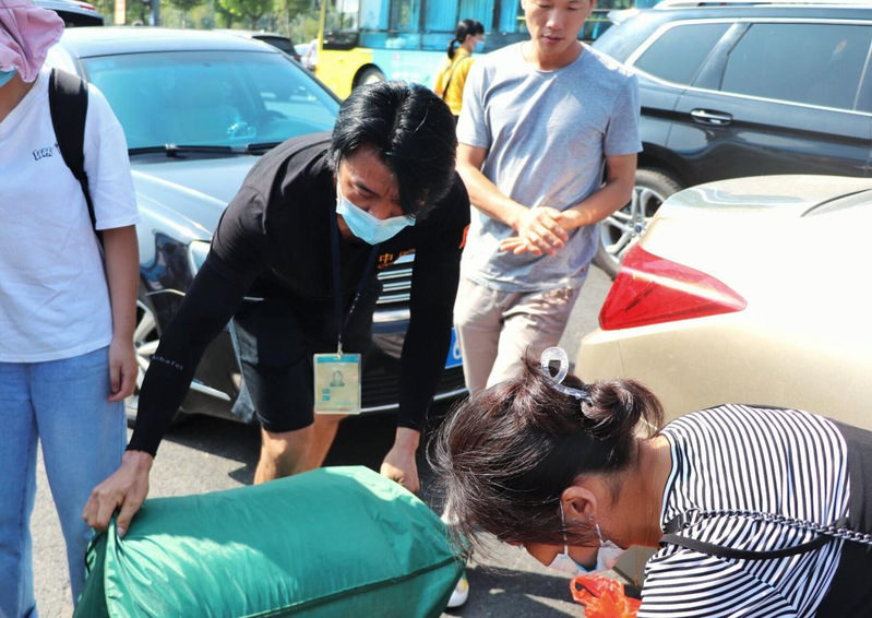 校卫队员帮助学生搬运行李