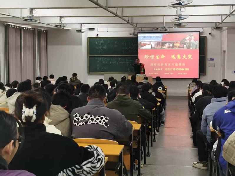 为进一步加强消防安全知识学习,强化防护措施和方法,进一步提升师生紧急避险、自救和互救能力,12月16日下午,我院邀请合肥领安消防工程有限公司刘教官在北城校区为师生开展消防安全知识讲座。