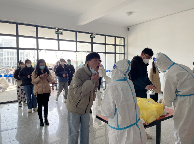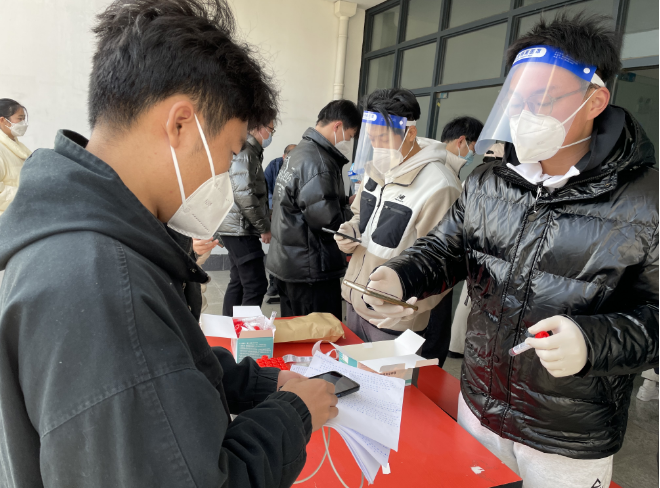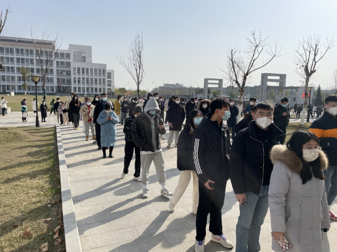 考研在即,后勤保卫处全体工作人员,按照校疫防办安排,于2022年12月21日下午配合医护人员在滨湖与北城两校区为参加本周末考研的学生开展核酸检测服务。