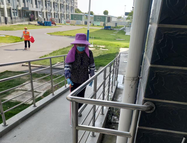 5月25日,后勤保卫处组织物业保洁人员对滨湖校区1-8号学生公寓周边开展消毒消杀工作。